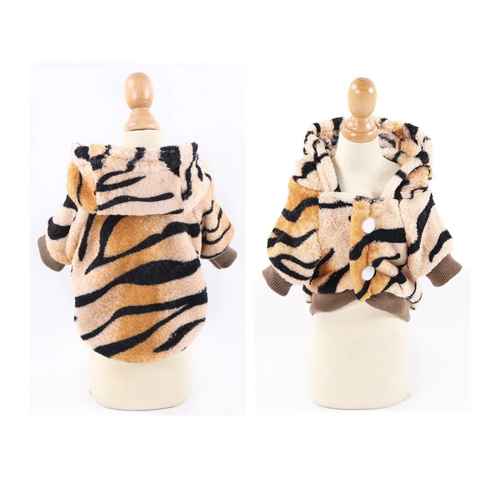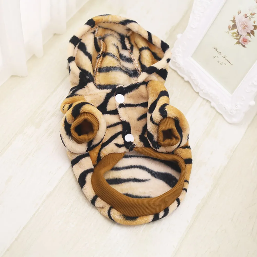 Pet Autumn Winter Button Tiger Into A Hat Warm Jumpsuit Coat For Dogs Soft Comfortable Sweater Vest Jacket Dog Clothes Pajamas