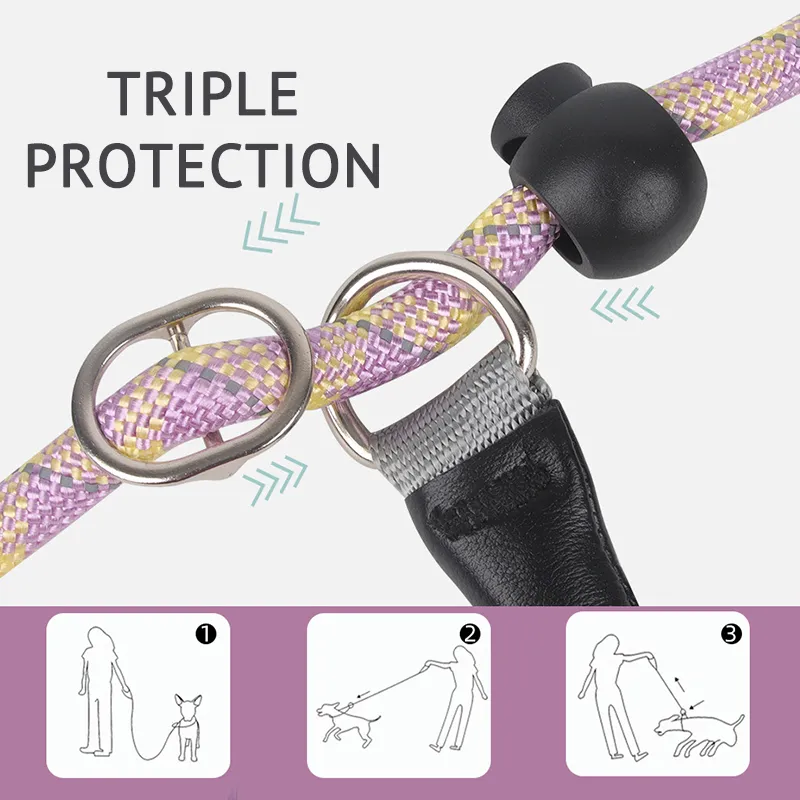 New Nylon P Slip Dog Leash Reflective Training Pet Lead Explosion Proof Not Entangled Strong P Collar Integrated Dogs Rope Stuff