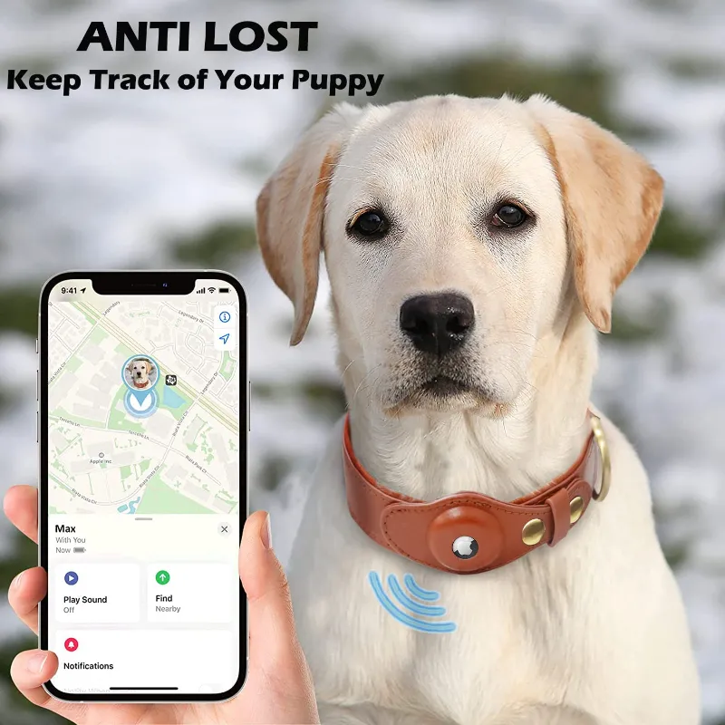 New Leather Anti-Lost Dog Collar with Airtag Holder for The Apple Airtag Heavy Duty Anti Lost Positioning Collar Dog Accessories