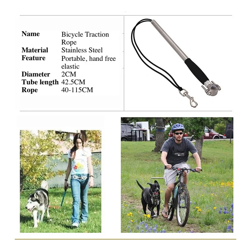 Stainless Steel Elastic Dog Bicycle Traction Rope Dog Leash Bike Attachment Pet Walk Run Jogging Hand Free Pets Leash