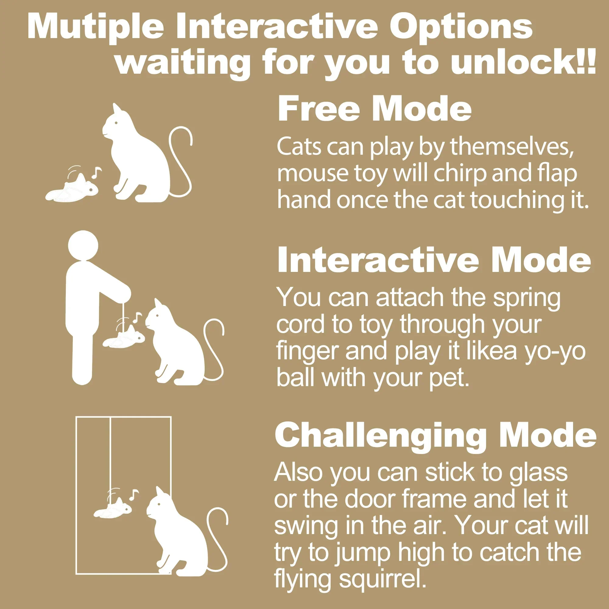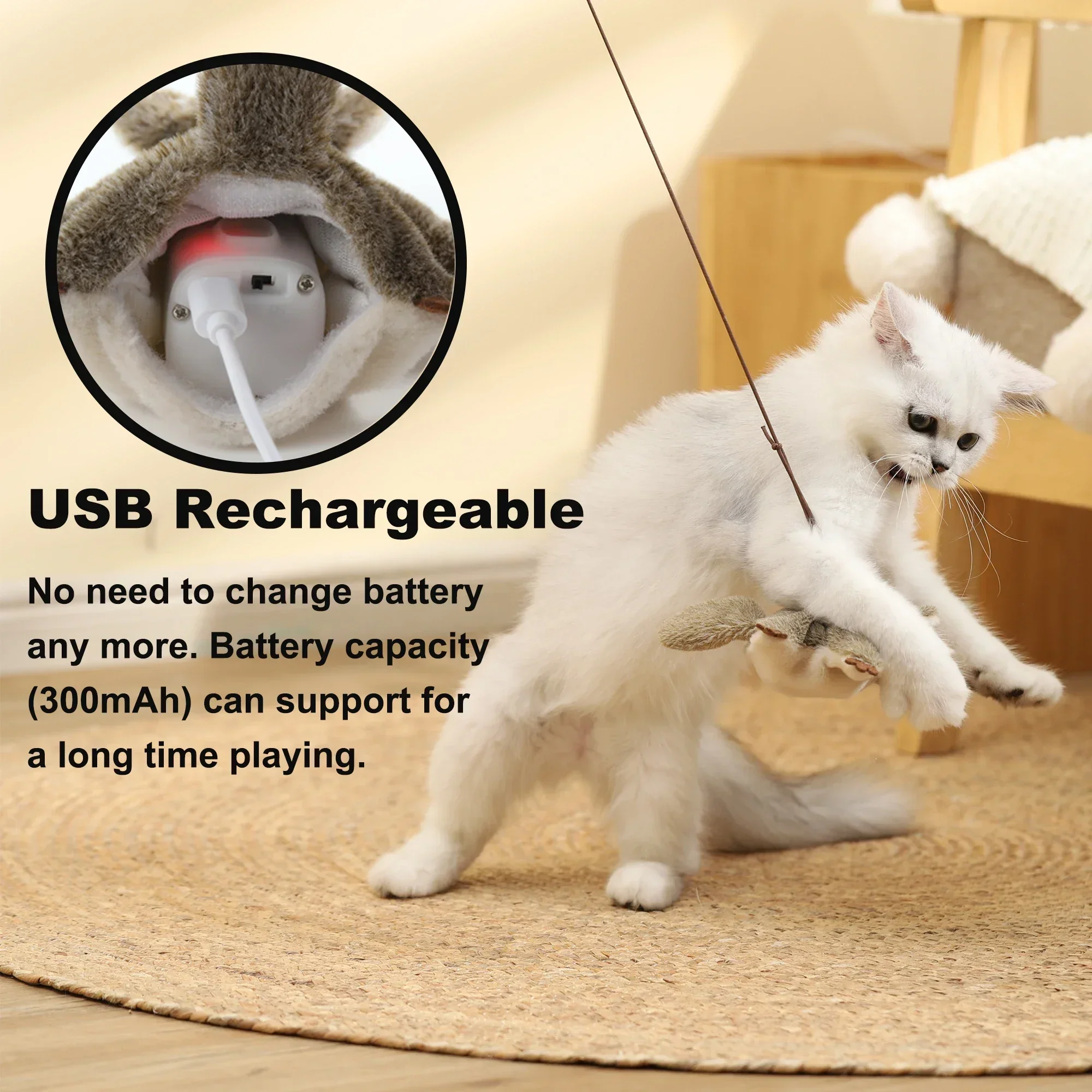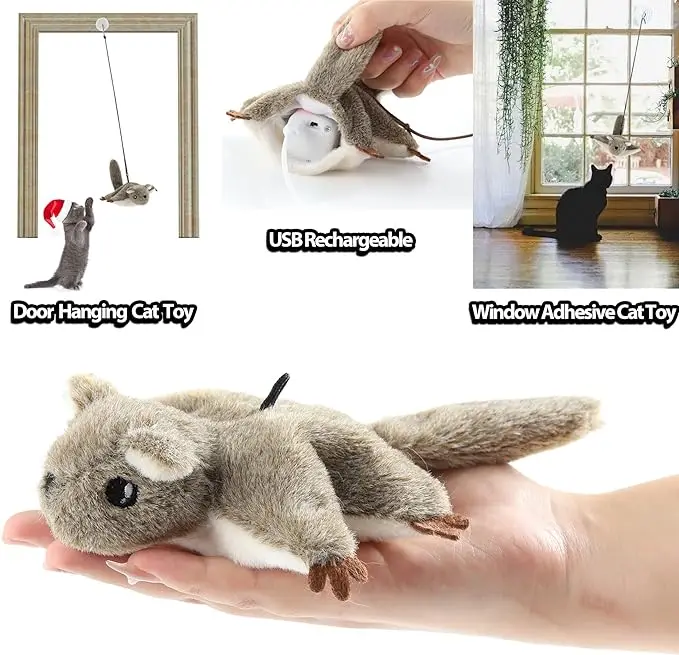 Vealind Cat Toys Hanging Door Flapping Flying Mouse Electronic Kitten Toys Interactive, USB Rechargeable Kitty Play Chase Exerci