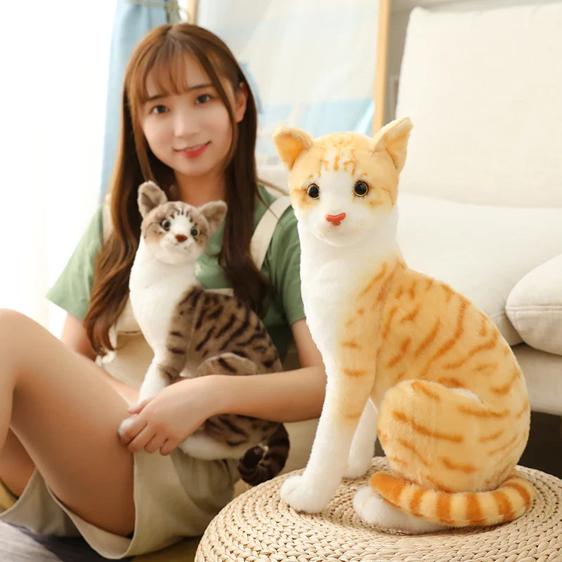 Stuffed Siamese Cat Animals Lifelike Plushie Doll Cute Kitten Plush Toy Soft Simulation American Shorthair Cat Peluche Kids Gift