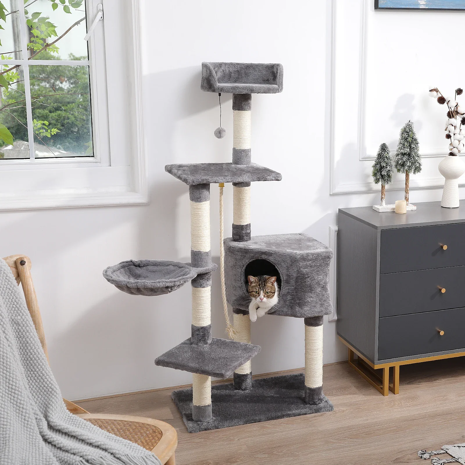 Cat Tree Cat Scratching Post Natural Sisals Kitten Toy Activity Tower Condo Stand Luxury Furniture for Small Medium Cats